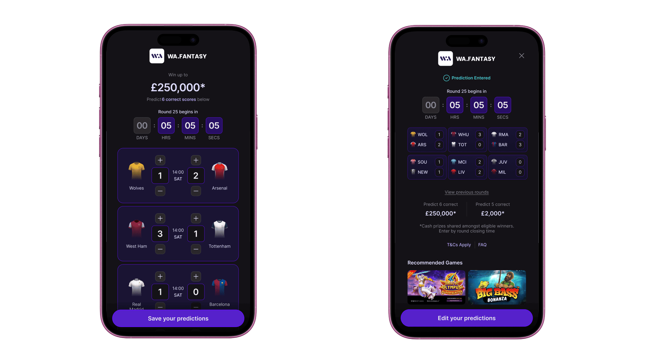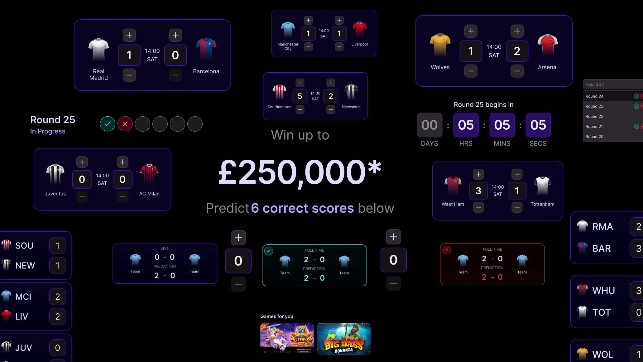 Read case studyDesigned a library of free-to-play fantasy formats for B2B operators — including Player Reveals and Predict 6 — enabling rapid deployment of retention-focused game experiences across sportsbook platforms globally.